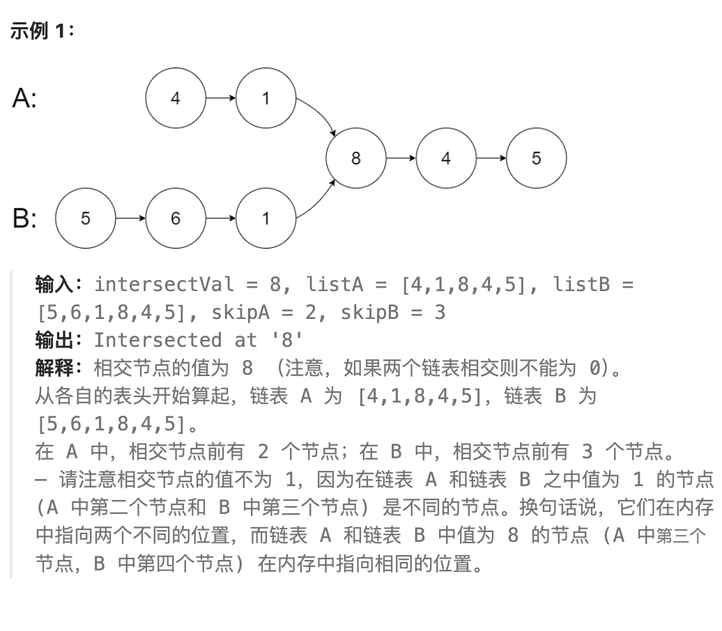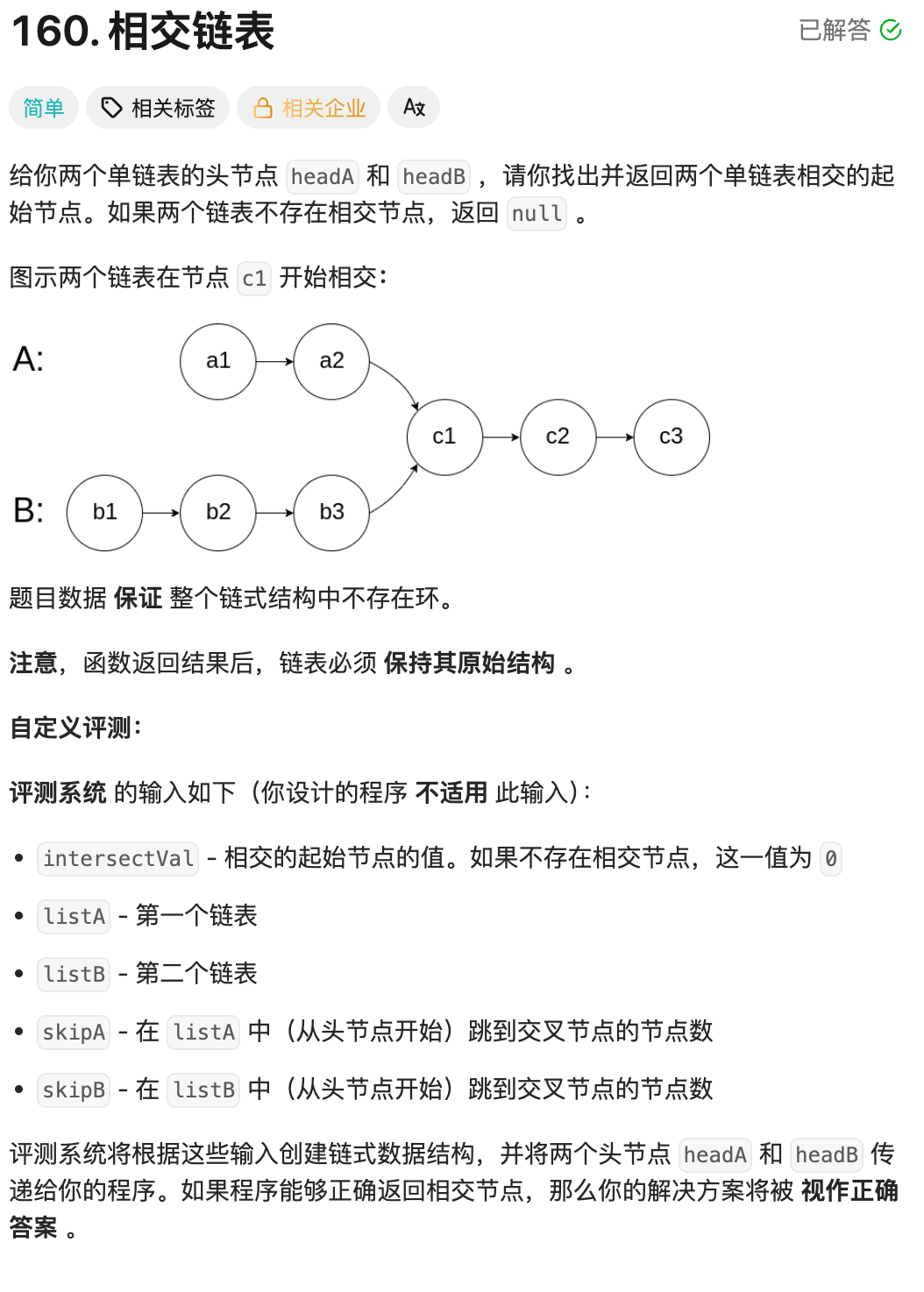 题目链接: https://leetcode.cn/problems/intersection-of-two-linked-lists/?envType=problem-list-v2&envId=2cktkvj
